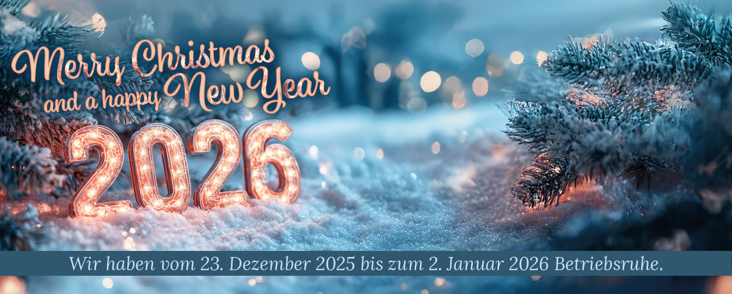 und ein frohes neues Jahr. Wir haben vom 23. Dezember 2025 bis zum 2. Januar 2026 Betriebsruhe.
