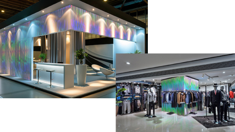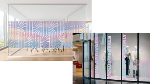 Printable dichroic film with etched glass finish in two colour versions: Luna (gradient in cool hues) and Nova (gradient in warm hues) – two additions to our popular range of dichroic films