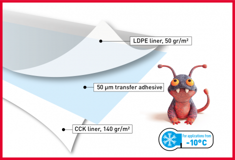 The transparent and UV-resistant adhesive system of the MonsterMount ASLAN MM 05 can be processed already at -10° C and without adhesive bleeding manually or with a laminator and provides materials with an extremely resilient adhesive that can withstand extreme stress. This means that a wide variety of materials can be transformed into a monster-like adhesive product.
