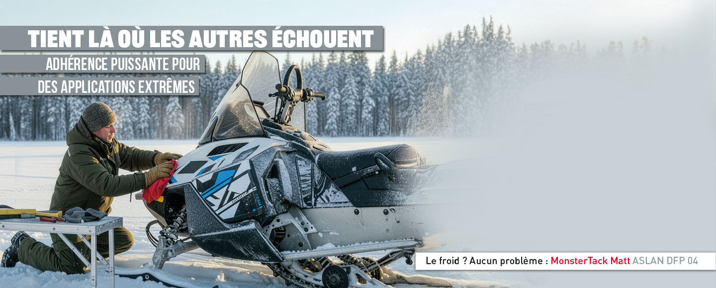MonsterTack Matt ASLAN DFP 04 établit de nouvelles références en matière d’adhérence. Un atout majeur est sa capacité d’application dès -10 °C, garantissant des résultats professionnels même dans des conditions de gel. Ce film numérique mat atteint une force d’adhérence impressionnante allant jusqu’à 34 N et offre une tenue exceptionnelle même sur les surfaces les plus exigeantes – des plastiques à faible énergie aux métaux en passant par les surfaces thermolaquées.