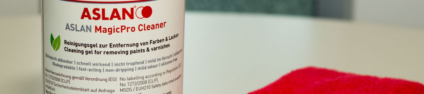 ASLAN MagicPro Cleaner est un gel nettoyant très efficace composé de composants biodégradables. Il enlève peintures et vernis rapidement et tout en respectant l'environnement. Il est essentiellement recommandé pour le nettoyage facile de graffitis sur MagicProtect Matt ASLAN SL 99 lorsqu'il est utilisé sur des surfaces rugueuses.