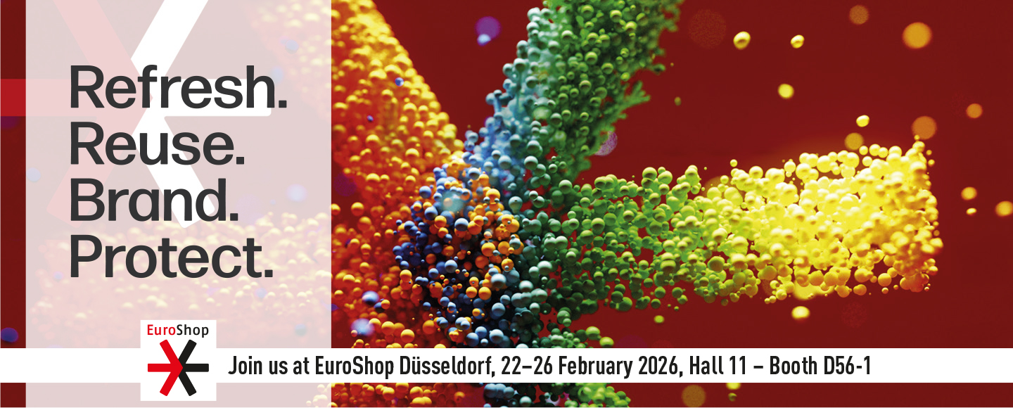 Unsere Mission auf der EuroShop 2026: Flächen neu denken – Refresh. Reuse. Brand. Protect. Wir freuen uns auf Sie in Halle 11, Stand D56-1!
