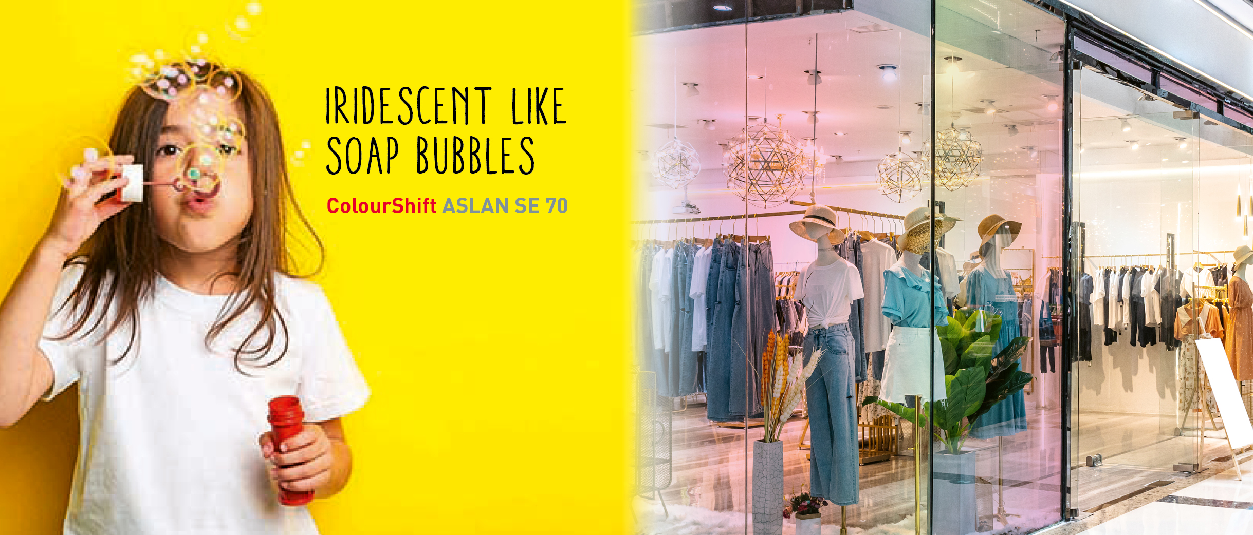 03 | 21 Bringing back some colour to our lives – with the brand new dichroic self-adhesive films from ASLAN. Two transparent dyed and four opaque films that shift colours depending on light conditions and viewing angle: ColourShift ASLAN SE 70 and ColourShift ASLAN SE 71.