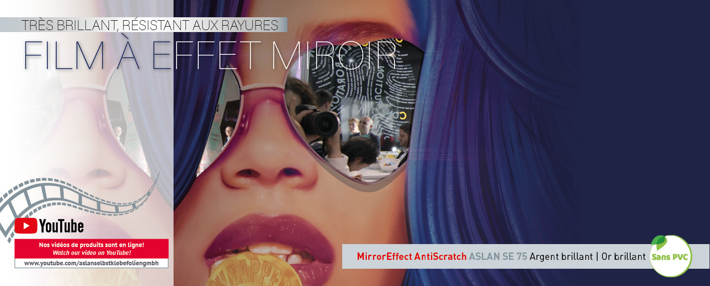 Film à effet miroir très brillant, particulièrement résistant aux rayures, disponible en argent et or