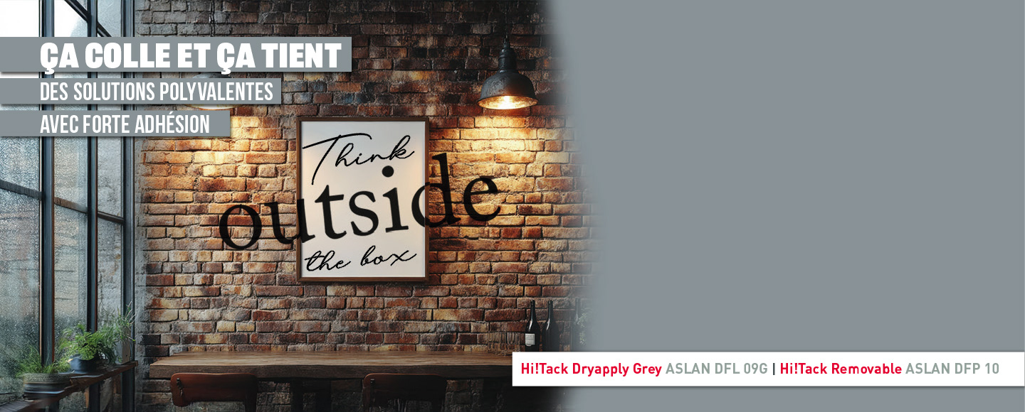 L'année 2025 commence avec deux nouveaux films d'impression numérique à forte adhésion dans le portefeuille d'ASLAN, adaptés aux applications sur des surfaces difficiles : Hi!Tack Dryapply Grey ASLAN DFL 09G et Hi!Tack Removable ASLAN DFP 10.
