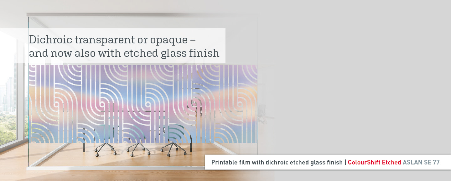 ColourShift Etched ASLAN SE 77. The unique feature: The sophisticated matt surface finish of the two new variants with an etched glass effect. The highlight: The films can be printed using all standard printing techniques for customised designs.