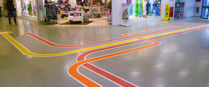 Nicht nur die Rutschhemmung, sondern auch die direkte Bedruckbarkeit und rückstandsfreie Ablösbarkeit machen das Produkt zur sicheren und gleichzeitig effizienten Floor Graphics-Lösung für den Einsatz in Flughäfen, Bahnhöfen, Einkaufszentren, Messen u. v. m.