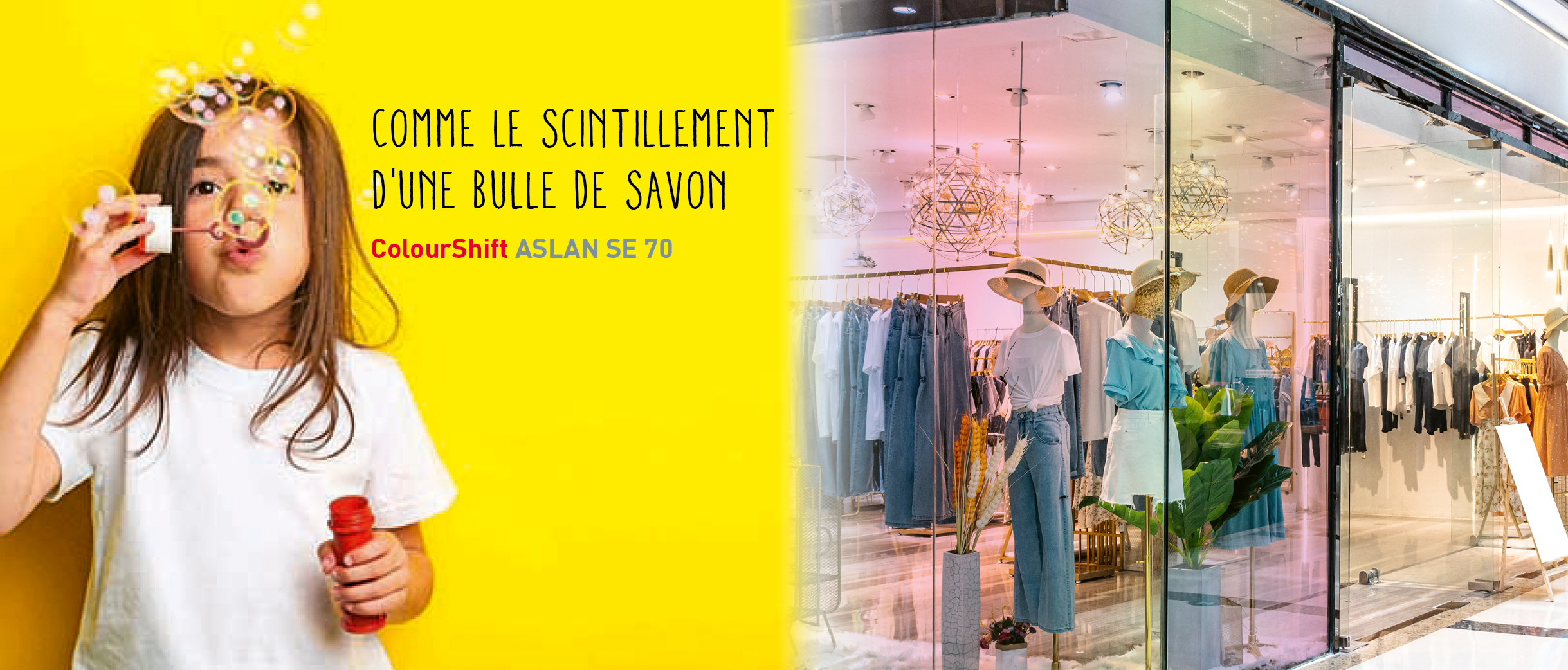 03 | 21 Redonnons de la couleur à nos vies - avec les tout nouveaux films adhésifs dichroïques d'ASLAN. Deux films dichroïques transparents et quatre déclinaisons opaques qui changent de couleur en fonction des conditions d'éclairage et de l'angle de vue: ColourShift ASLAN SE 70 et ColourShift ASLAN SE 71.