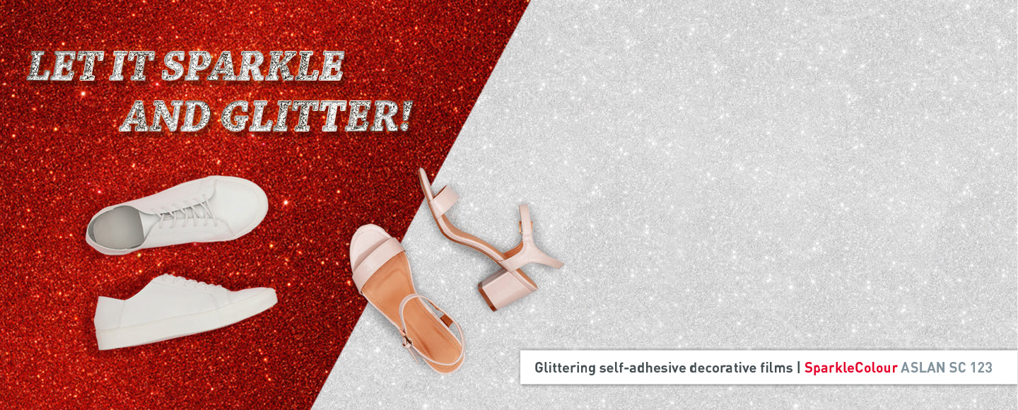 When it shines and glitters it doesn't necessarily have to be Christmas. Just look at the new self-adhesive film SparkleColour ASLAN SC 123 and let your imagination sparkle too. The six exciting shades of gold, silver, black, white, red and green (available soon), are just waiting to be used for plotter cut graphics, or full-surface applications, on all smooth surfaces. And if that’s not enough, then there‘s more good news. For a minimum order quantity of just 500 linear meters, we can offer you 30 more glittering shades.