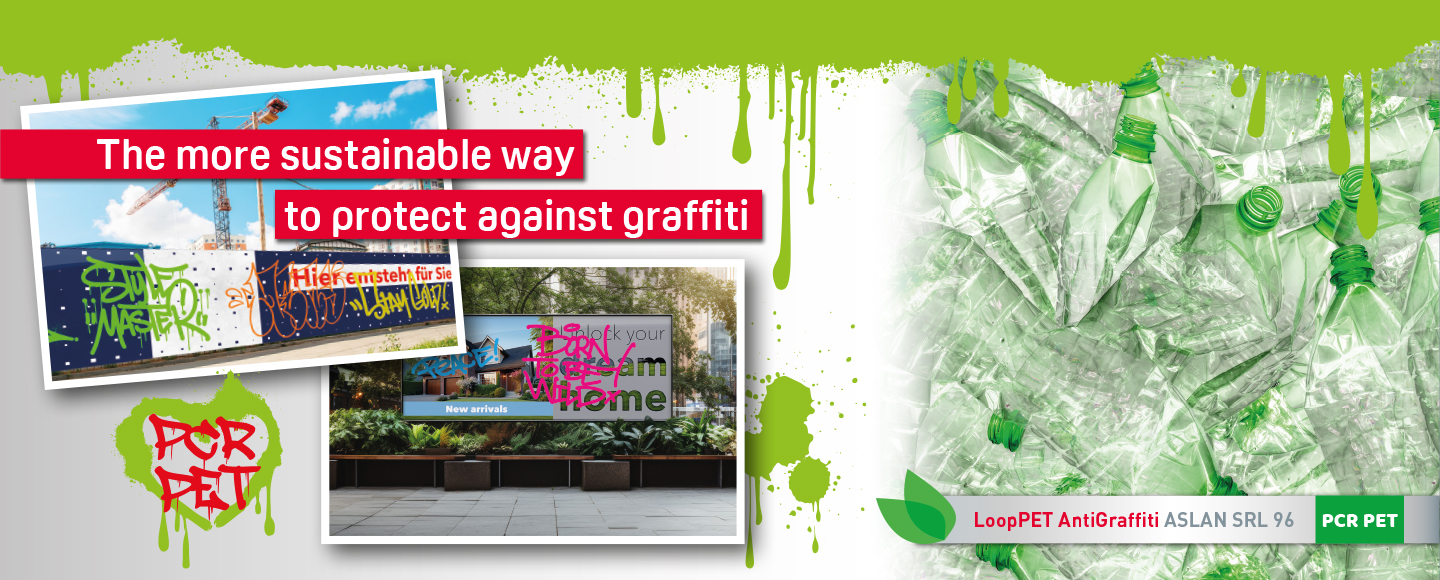 LoopPET AntiGraffiti ASLAN SRL 96 is the more sustainable way to protect against graffiti. This self-adhesive, highly transparent, 50 µm gloss laminate, is made from 70% recycled polyester (PCR-PET) and is specifically for the protection of printed media. Due to its special surface coating, the scratch-resistant laminate offers reliable protection against spray paint and contamination from permanent markers. Therefore, graffiti can be easily removed residue free. Aggressive anti-graffiti cleaners can also be used regularly without damaging the surface.